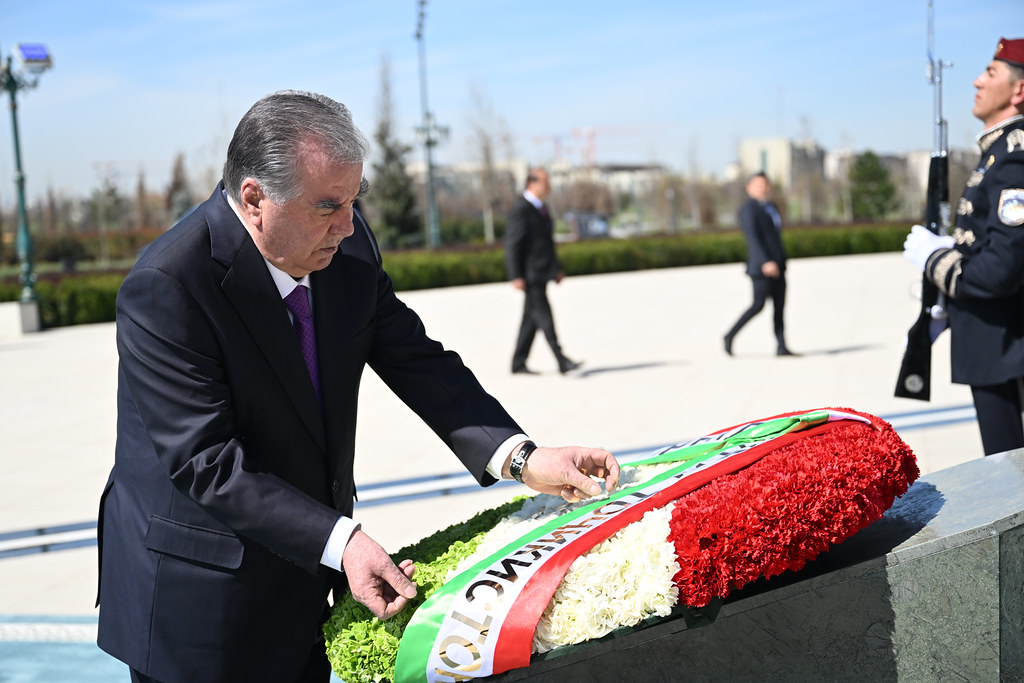 26 март дар доираи сафари давлатӣ дар Ҷумҳурии Узбекистон Президенти Ҷумҳурии Тоҷикистон, Пешвои миллат муҳтарам Эмомалӣ Раҳмон нахуст бо нишони эҳтиром ба таъриху фарҳанги мардуми узбек дар назди Муҷассамаи “Истиқлолият ва башардӯстӣ” гулчанбар гузоштанд.